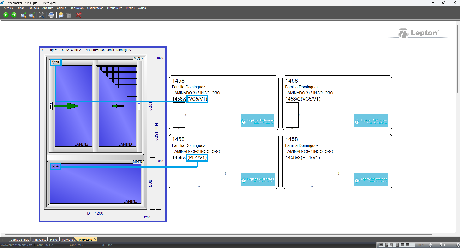 En la etiqueta de vidrios, ahora aparece información de la tipologia y producto.