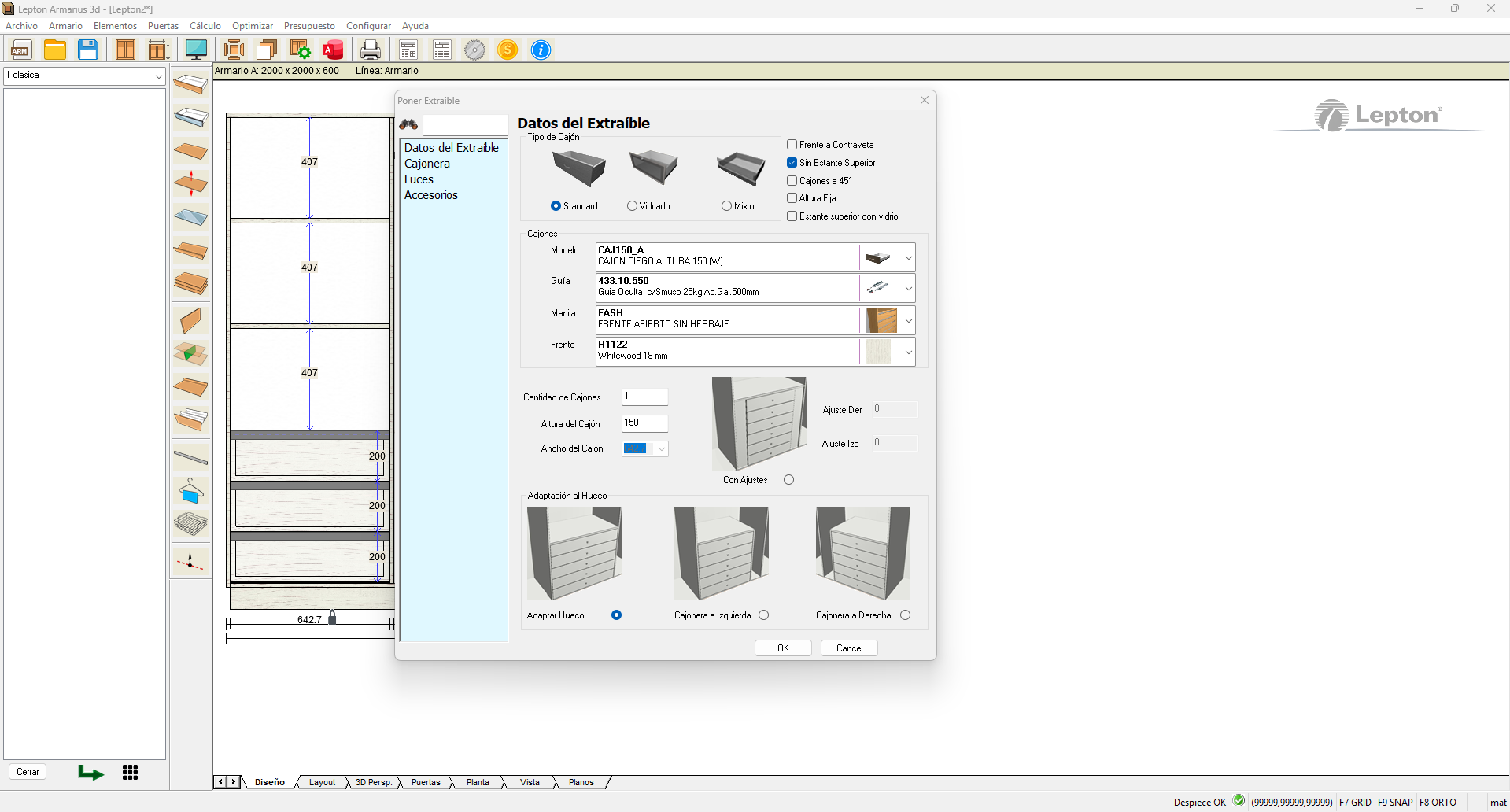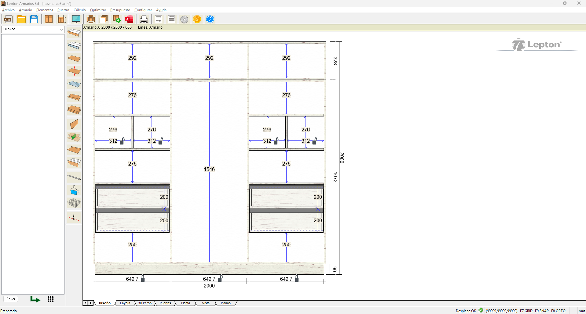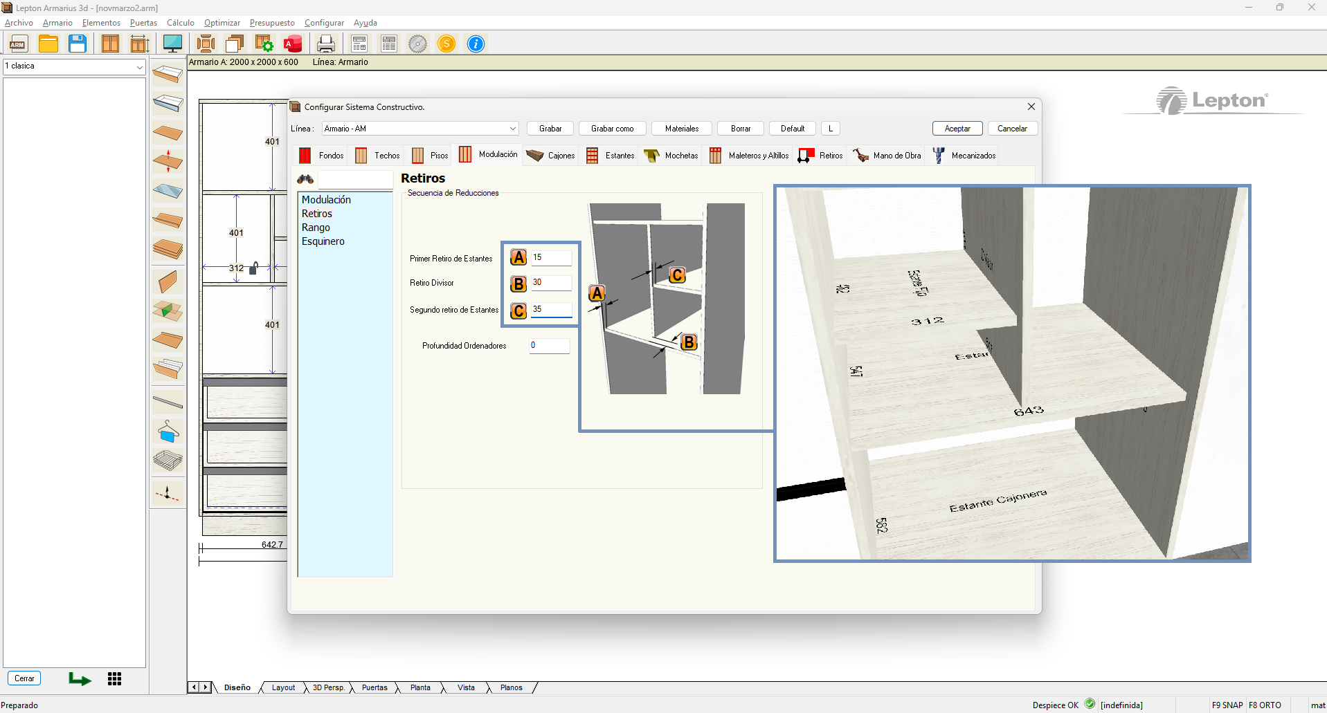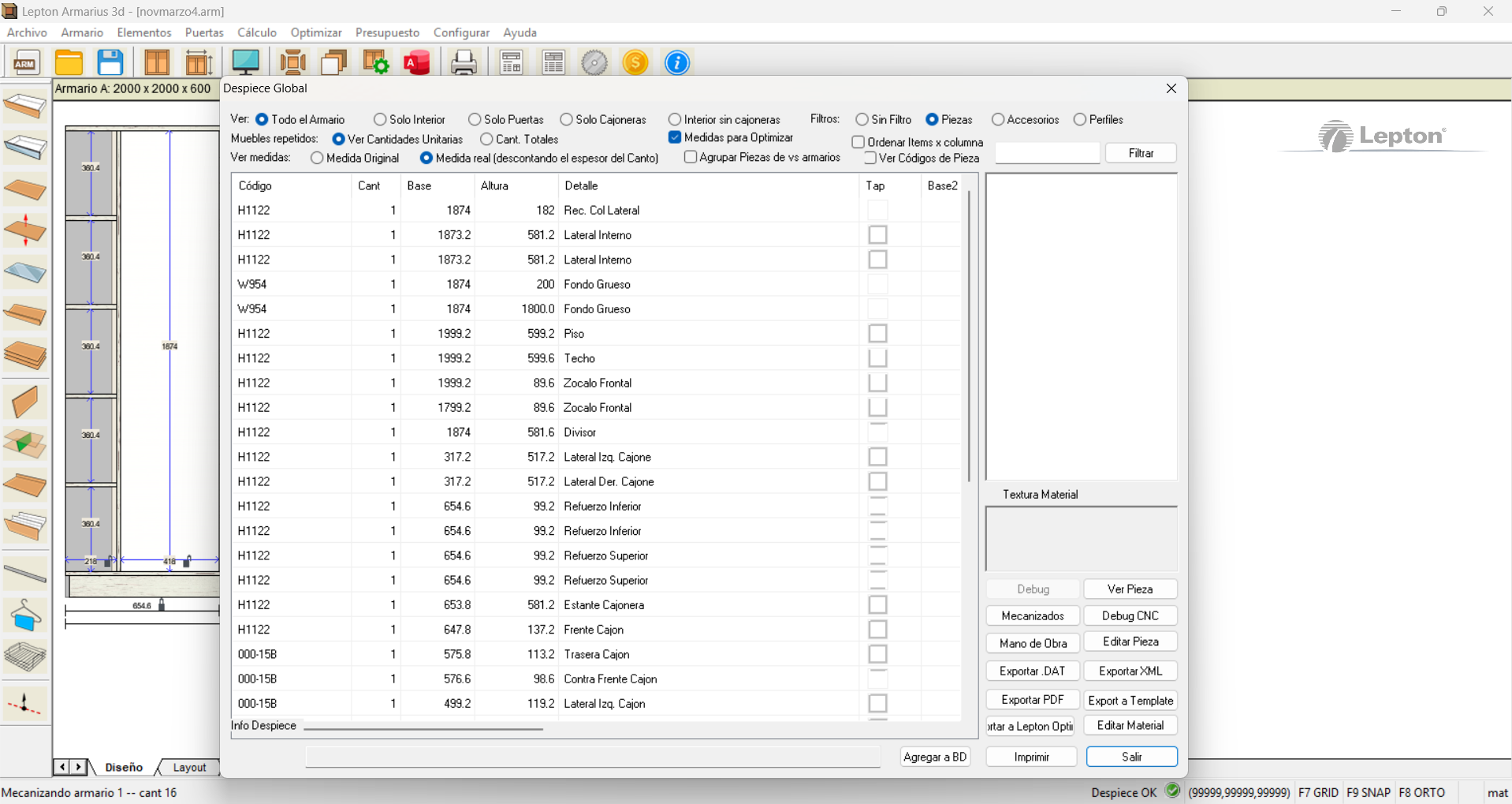 Se ajustó el cálculo de columnas y profundidades de laterales para que las medidas de armario y piezas respeten exactamente los valores configurados, evitando pequeñas diferencias de milímetros en el diseño y fabricación.