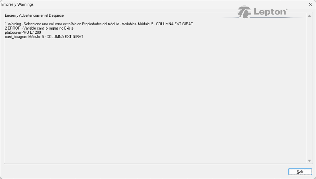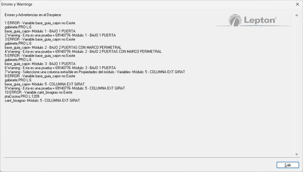 Se mejoró el sistema de mensajes de errores y advertencias, incorporando mayor información contextual para facilitar su identificación dentro del proyecto. Los errores, mensajes y warnings ahora indican el id del modulo y la tipologia.