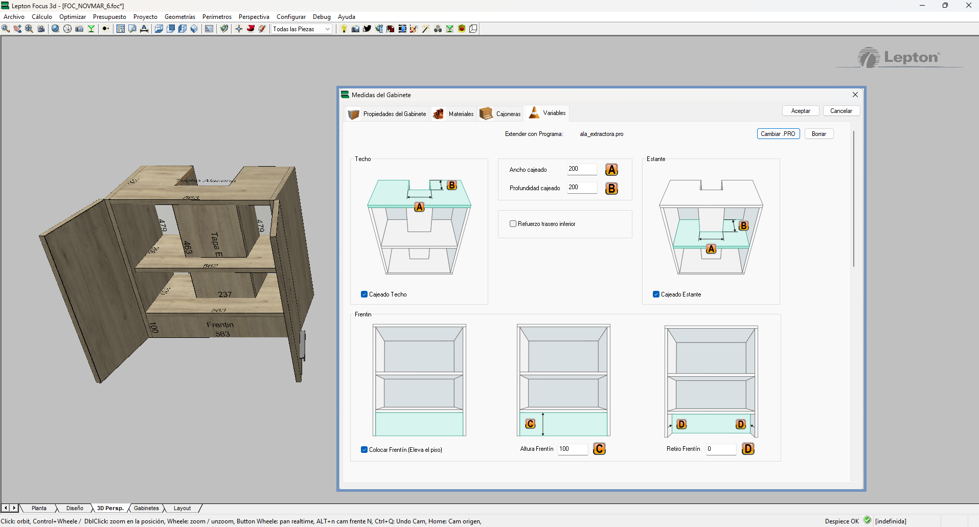 Se unificó el comportamiento de perfiles de gola en distintos materiales (melamina y aluminio), permitiendo un control más consistente de los mecanizados cuando se utilizan opciones como “no cajear extremos”.