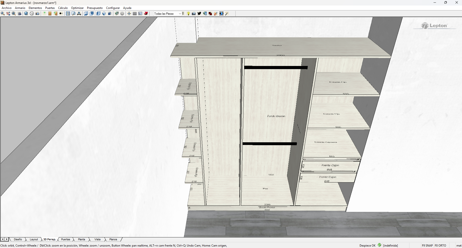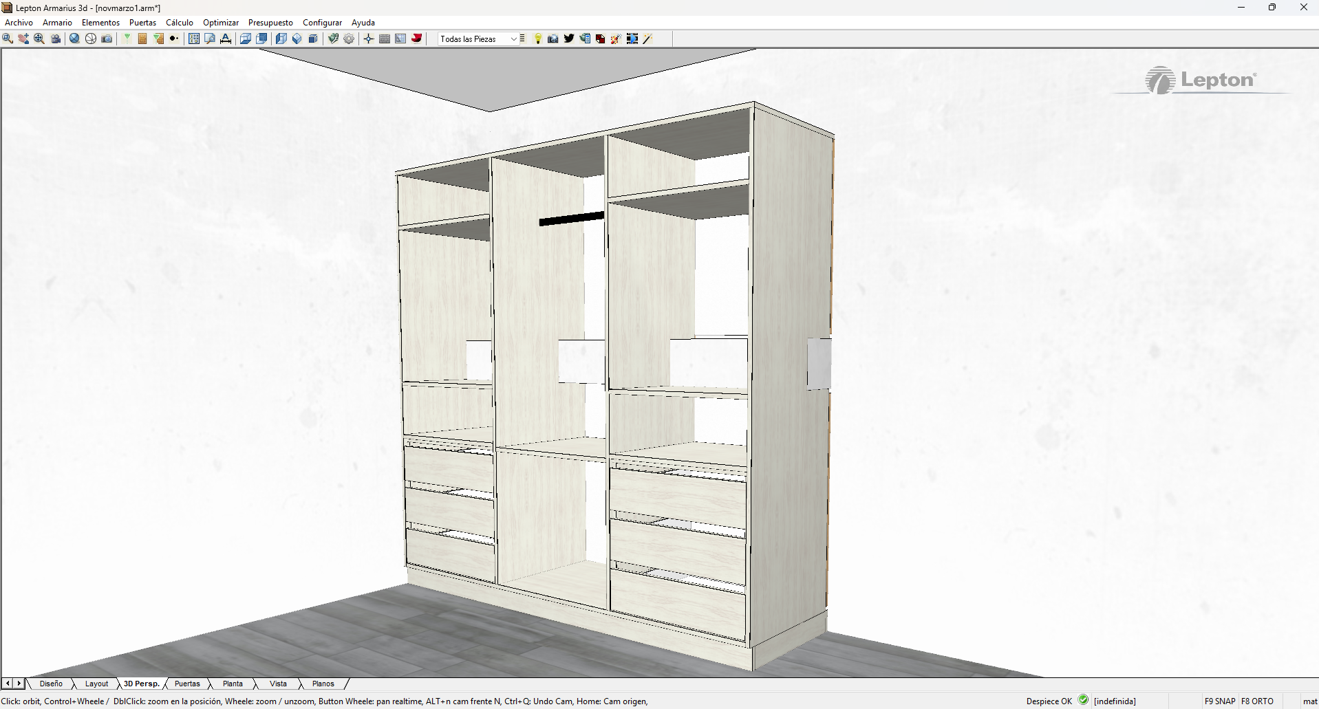 Se ajustó el comportamiento de estantes sobre columnas en armarios de varios cuerpos para que los estantes se generen y visualicen correctamente en 3D, evitando desapariciones o inconsistencias en el diseño.